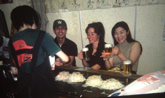 A couple enjoy dinner with Joolee on the Hiroshima hitch