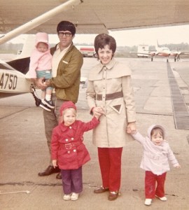 The Aurand family (from right: Julie, Genevieve, Jeanette, and Nelson with cousin Kristen in his arms) with the Cessna 170B four-seater around 1974.